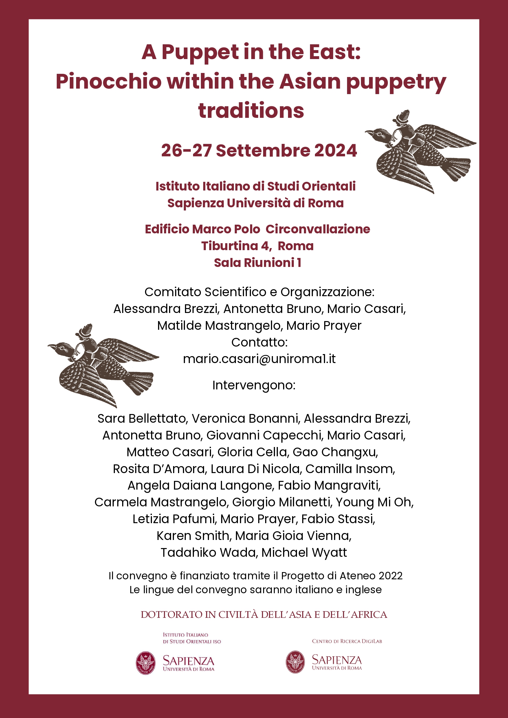 Il convegno esplora le tradizioni marionettistiche asiatiche, analizzando la traduzione di “burattino” e “marionetta” nelle lingue dell'Asia e la ricezione del burattino Pinocchio in queste culture.